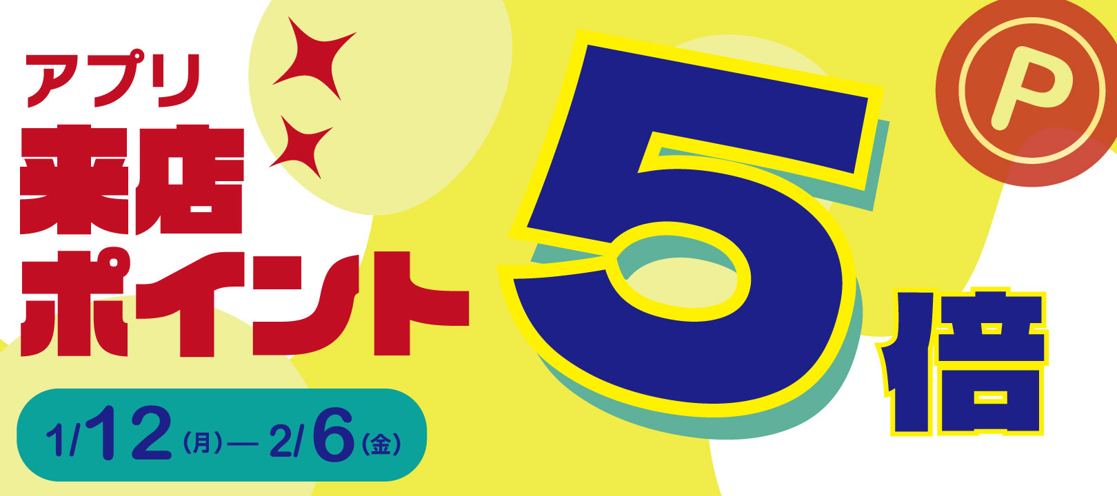 公式モバイルアプリ 2026年1月12日(月)~2月6日(金)来店ポイント5倍!!